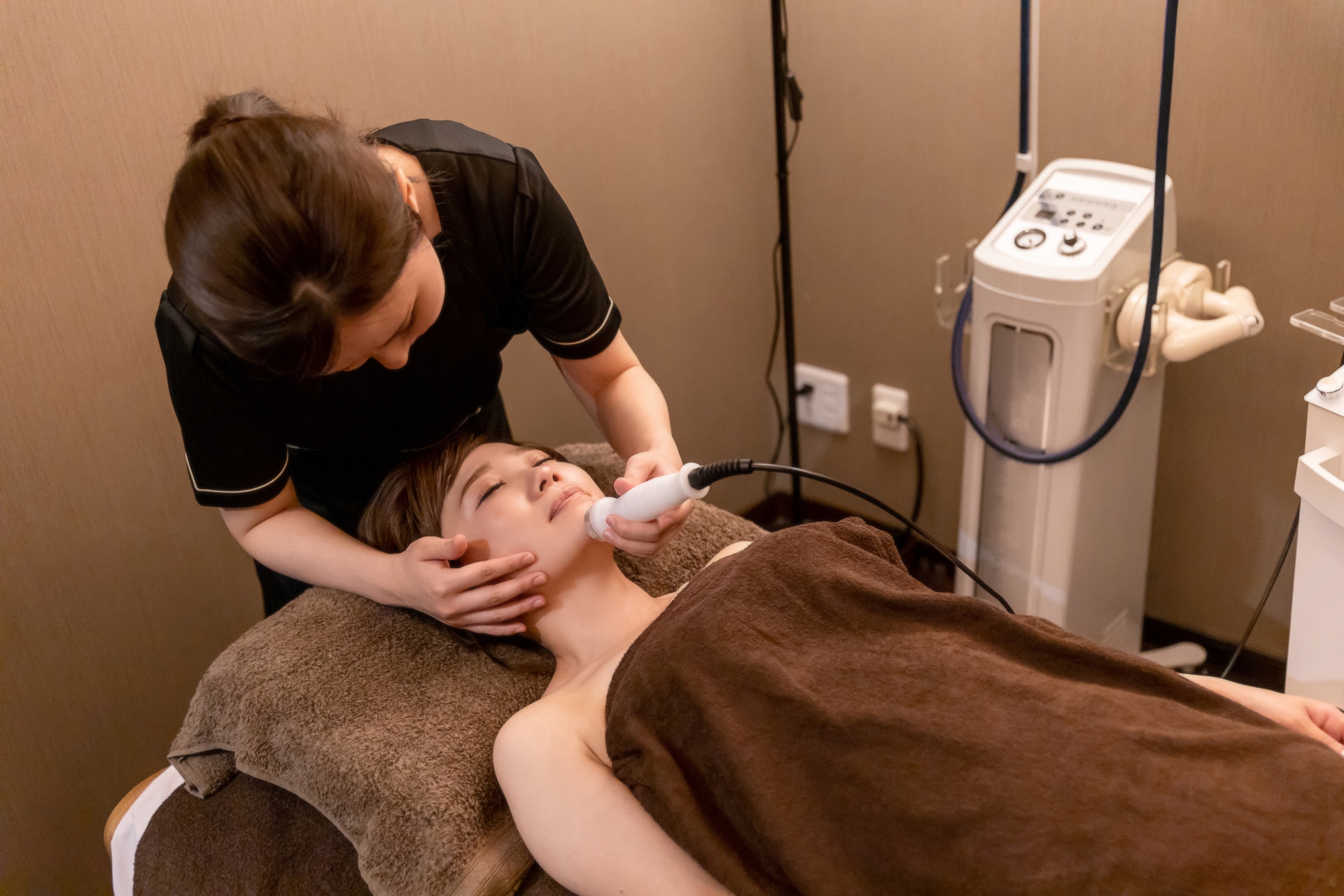 専用の超音波機器を使用して、超音波を肌に照射します。超音波の振動によって、肌のコラーゲンやエラスチンの生成が促進されます。また、リフティング効果により、肌が引き締まり、若々しい印象を与えます。